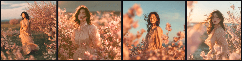 “봄 시즌 룩북에 어울릴 감성적 인물 컷 프롬프트 만들어줘”