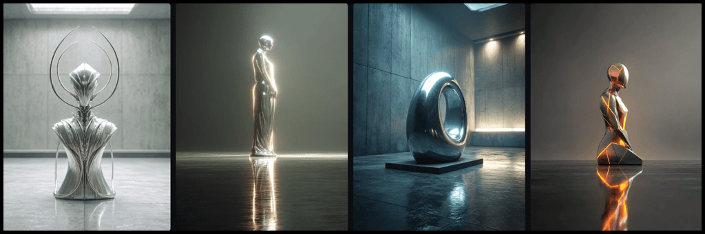 futuristic statue, chrome surface, volumetric light, octane render --v 7 --ar 3:4