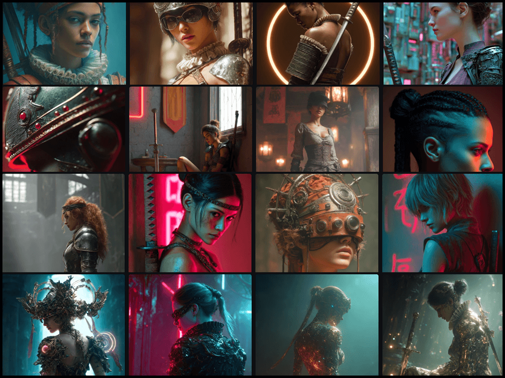 전사 여성, 르네상스 스타일, 사이버펑크 분위기, 옥탄 렌더